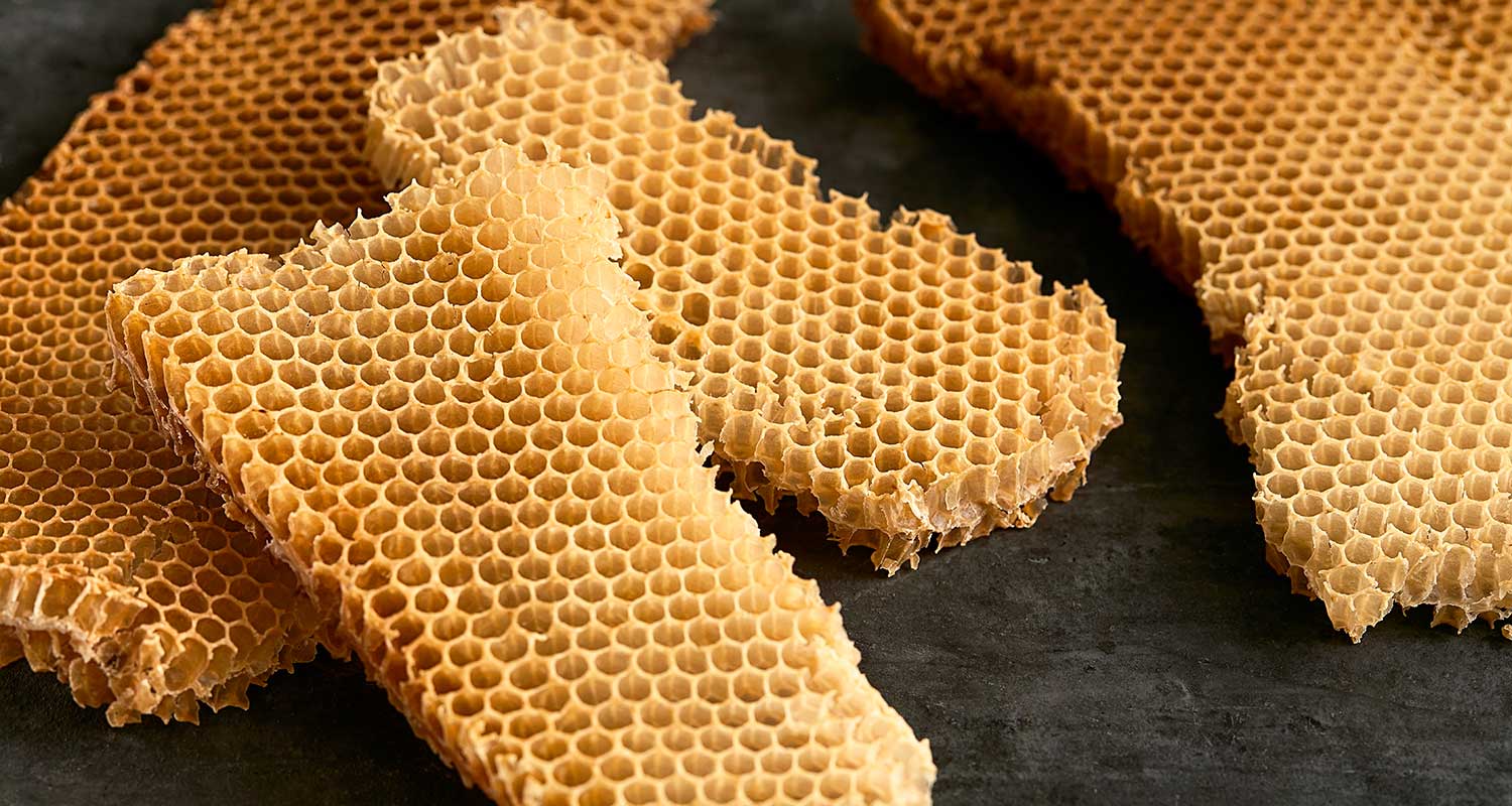 The yellow wax remains in the honeycomb once the honey is extracted. Beeswax is a major component of our shoe polish.